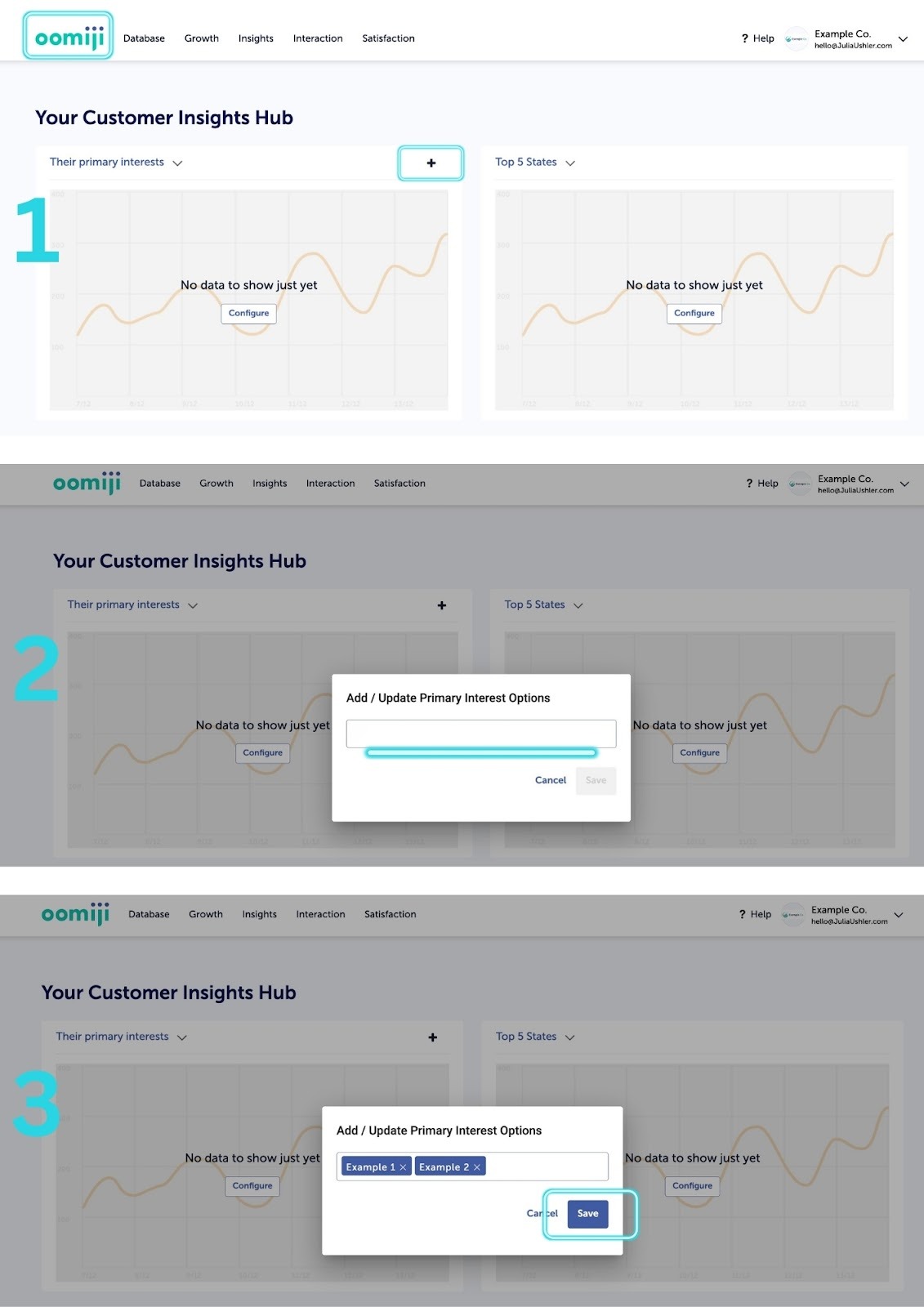 Primary Interest is a standard field in every Oomiji Dashboard. You do not need to create it. The steps below cover how to define your interest options and begin collecting responses.