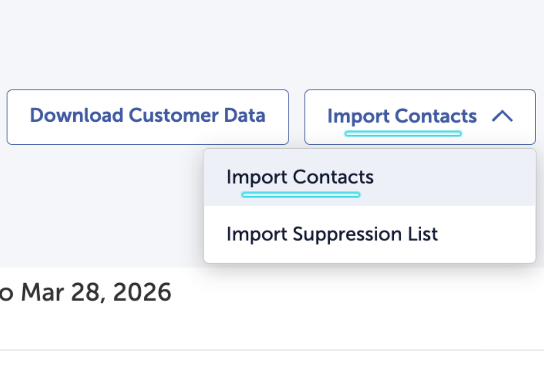 For details, refer to Manage Your Suppression List. Starting with a current suppression list ensures every contact you import is eligible to receive communications.
