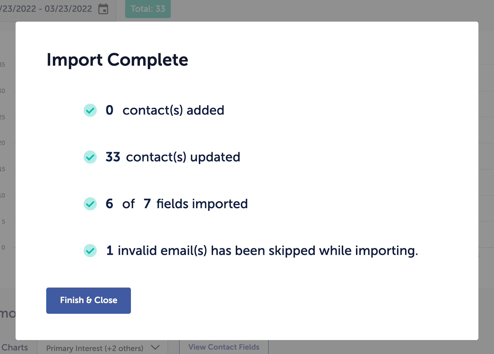 - How many contacts were imported