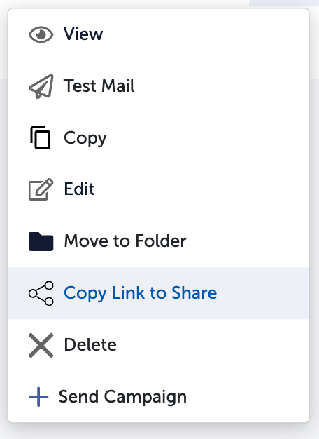 - To send the same template as an email campaign in addition to sharing it, see Sending and Scheduling Email Campaigns.