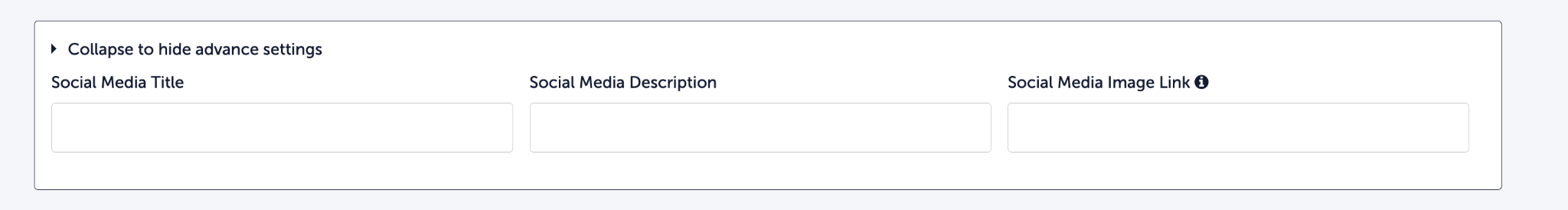 - Three fields appear: Social Media Title, Social Media Description, and Social Media Image Link.